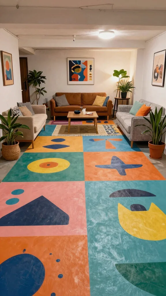 For a creative flair, painting your basement floor provides a budget-friendly way to refresh your space. This option allows you to express your personal style through vibrant colors and patterns.