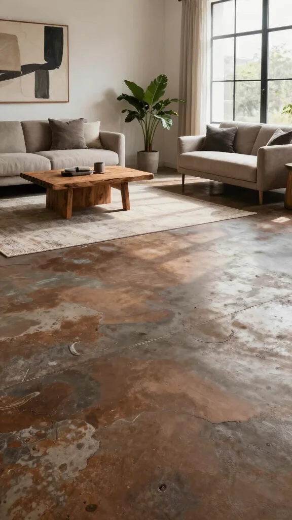 The beauty of stained concrete lies in its customization; you can choose from a variety of colors and finishes to create a unique look that suits your personal style. Its sleek surface can effortlessly enhance both modern and rustic themes.