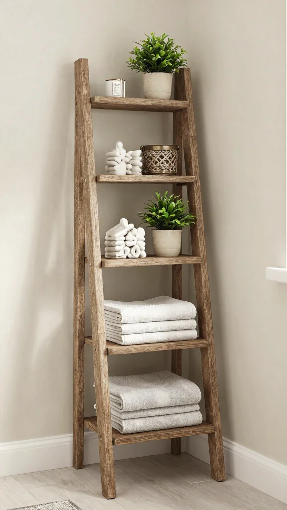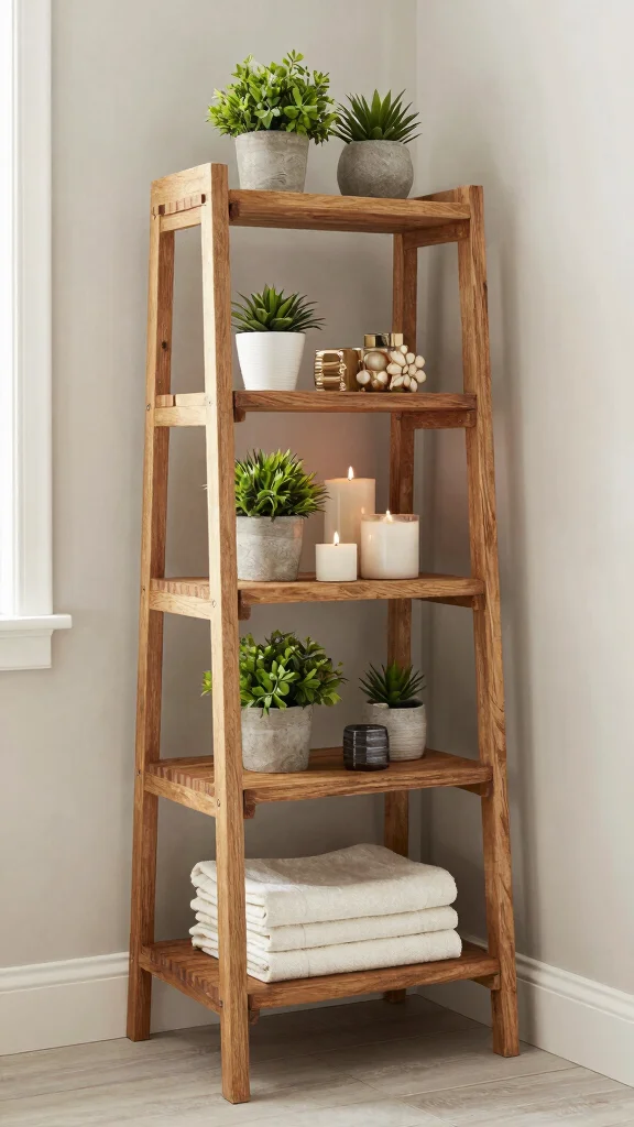 If you’re after a stylish storage solution, ladder shelves are a fantastic choice. Their vertical design adds height without consuming precious floor space, making them ideal for compact bathrooms. With multiple tiers, they provide ample opportunities for displaying everything from fluffy towels to vibrant plants.