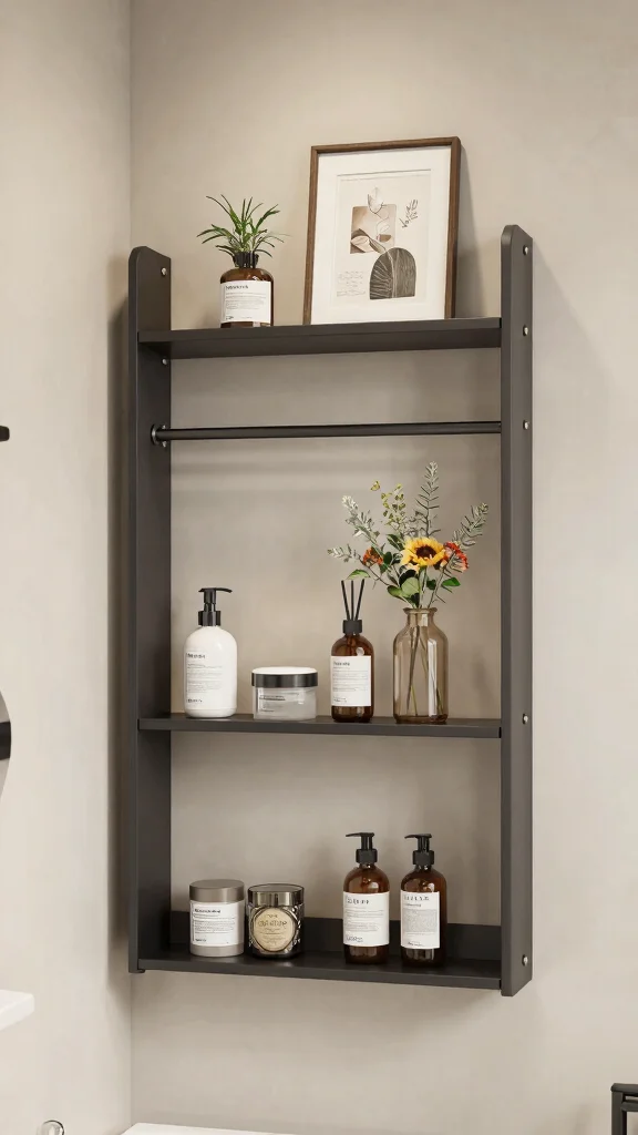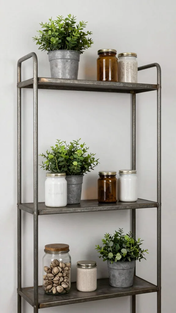 For those who love a bold aesthetic, industrial metal shelving adds an edgy yet functional element to your bathroom. These shelves create a contemporary feel that can beautifully balance more rustic decor elements.