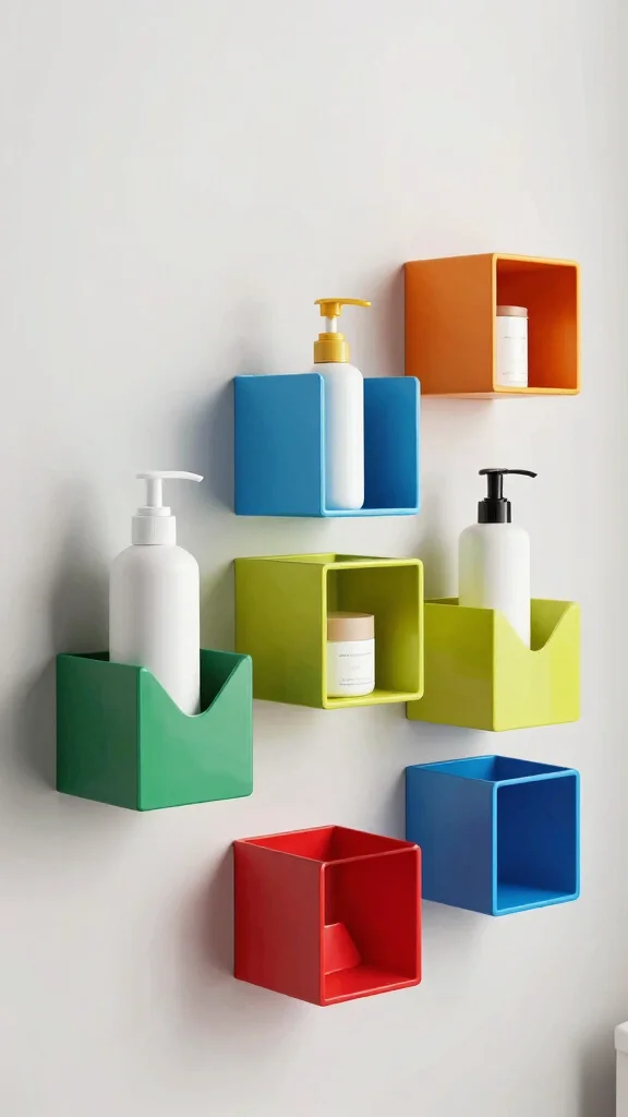 Wall-mounted storage cubes introduce a trendy, geometric design element to your bathroom. These cubes save floor space while providing ample storage for smaller items, making them both stylish and functional.