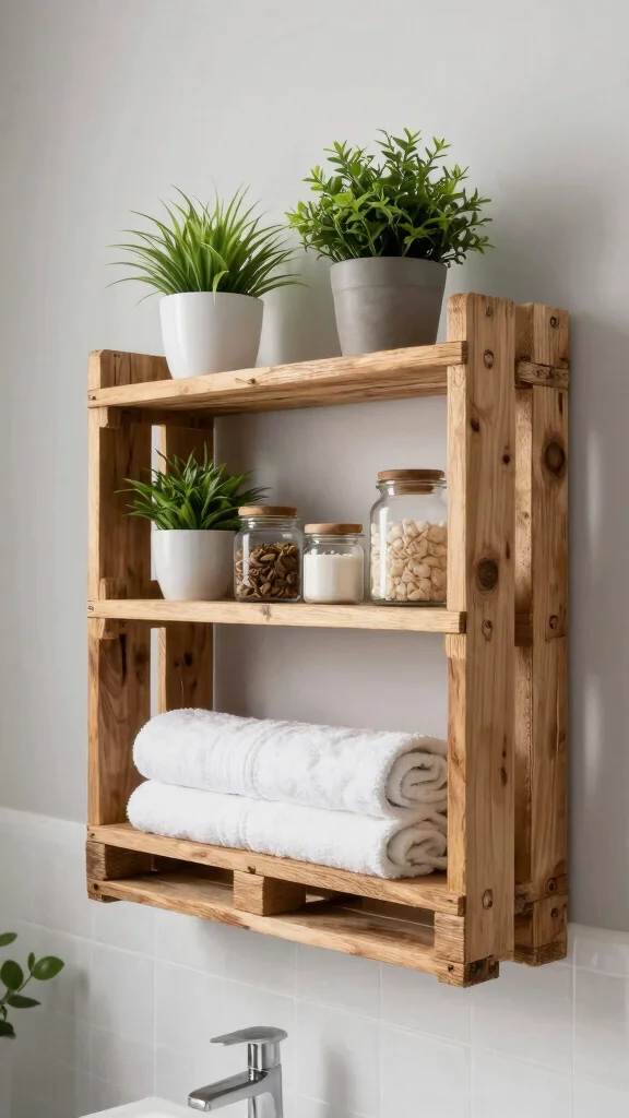 Repurposed wooden pallet shelves bring an eco-friendly twist to bathroom decor. With a little creativity, you can transform a simple pallet into a functional shelf that seamlessly blends style and purpose.