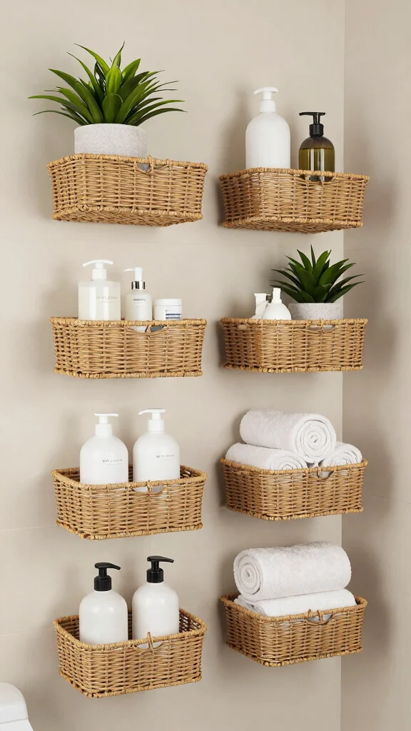 – Use decorative baskets to store toiletries stylishly.