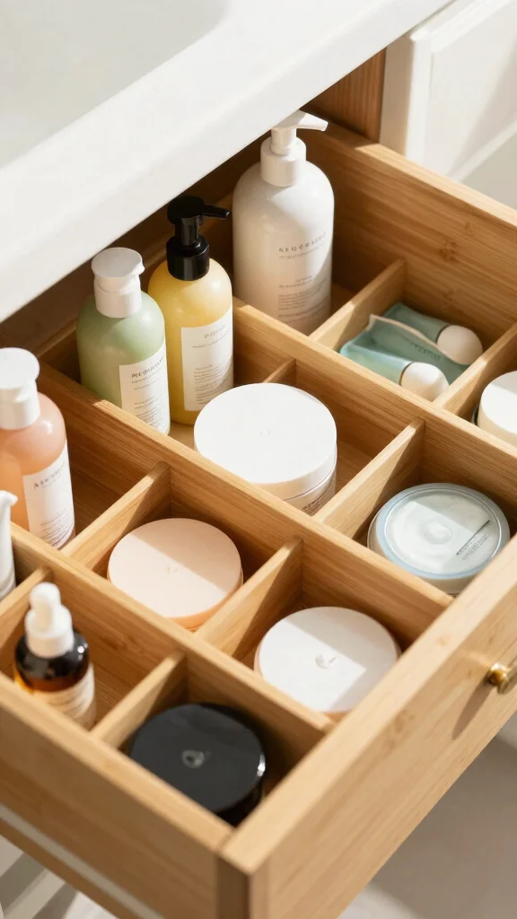 Get ready to discover innovative ways to maximize your storage and create a soothing atmosphere. From bamboo dividers to natural wood boxes, these tips will help you reclaim your bathroom drawers. Each idea is designed to not only keep your items in order but also add a touch of warmth and style to your space. Let’s dive into the world of bathroom drawer organization!