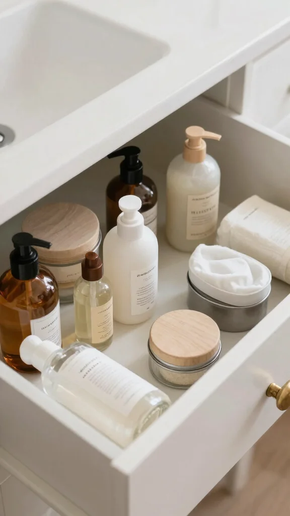 Did you know eco-friendly drawer liners made from recycled paper can reduce clutter by up to 30%? With light colors and natural fibers, your bathroom drawer organization ideas become instantly more inviting and practical.