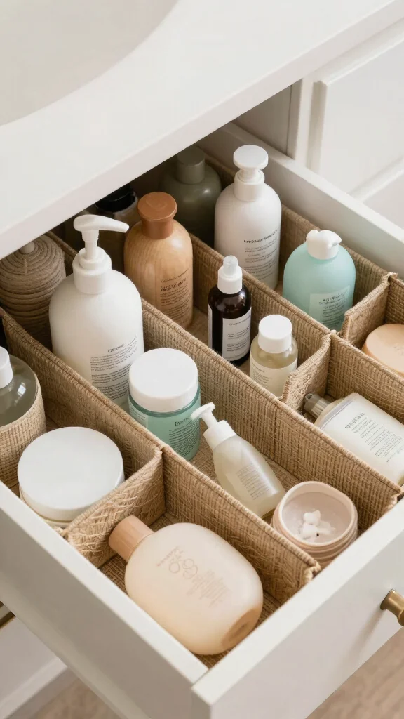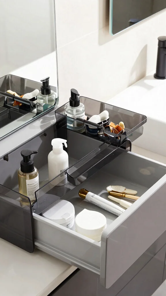 Fun fact: 70% of plastic waste ends up in landfills, but recycled-material drawer organizers can slash clutter and waste at the same time. They fit any drawer layout and keep cosmetics separate from grooming tools—eco-friendly and perfectly practical for bathroom drawer organization ideas.