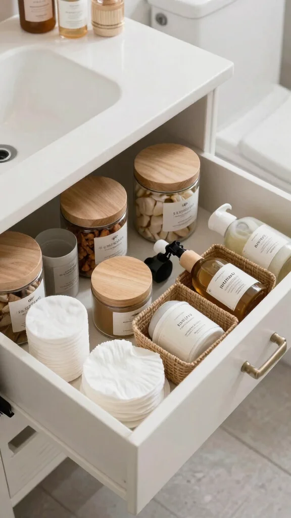 Vanity organization tips aren’t just about neatness; they’re about reducing waste too. Start with a quick declutter of expired products, then transfer items to clearly labeled, reusable containers. Use open baskets for daily essentials and glass jars for cotton swabs and Q-tips. For a tidy bathroom essentials routine, reset your vanity every evening and wipe down surfaces weekly. This approach supports tidy bathroom essentials while respecting sustainability and bathroom drawer organization goals.