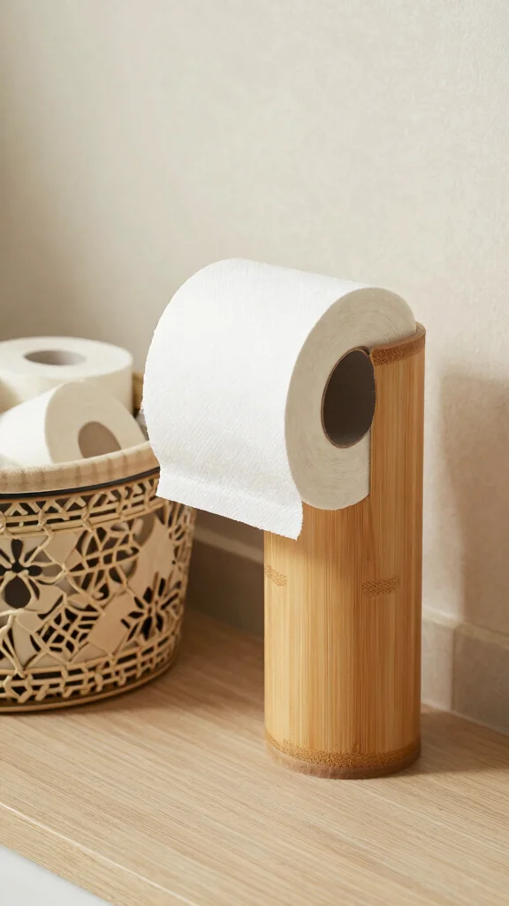 Using natural materials for toilet paper storage can blend functionality with design, turning a necessity into a decorative element.