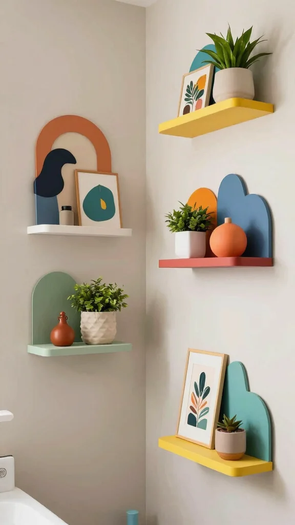 For the creative spirits, artistic floating shelves serve as both storage and a canvas for self-expression. Available in unique shapes, colors, and materials, these shelves can transform your bathroom into a vibrant work of art. They are ideal for displaying art pieces, books, or decor that reflects your individual style, pushing the boundaries of conventional design.