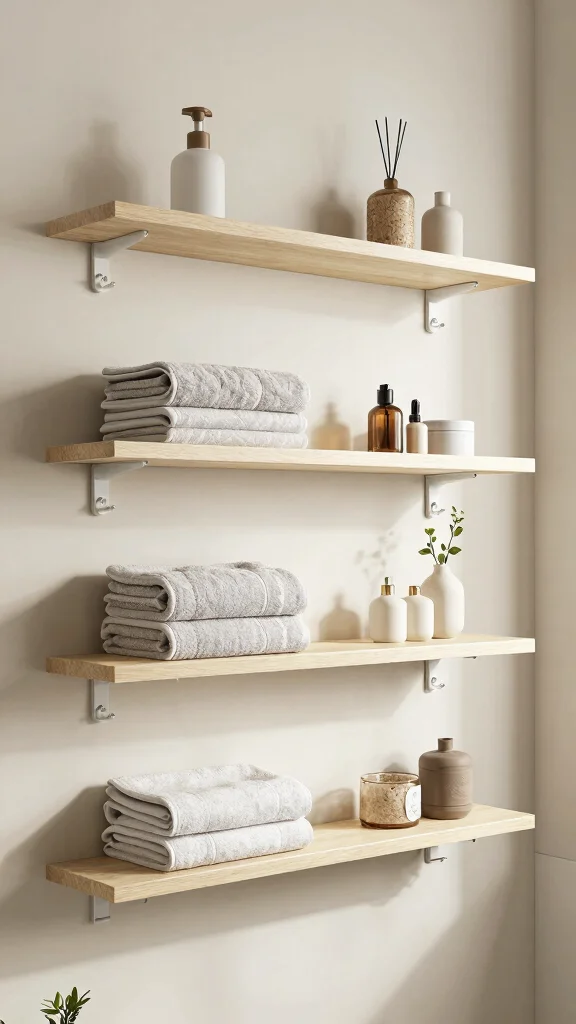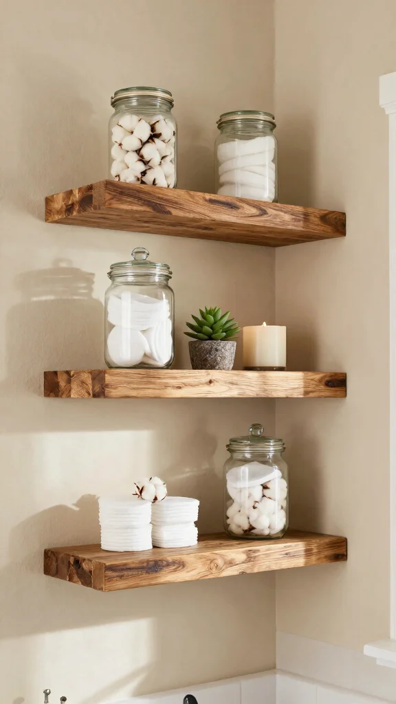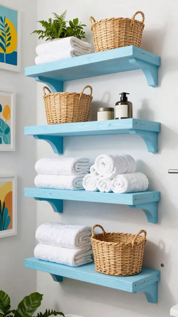 For a fun twist, consider painting the shelves in bold colors to make them pop. You can also use them to hold neatly rolled towels for a spa-like feel. Combining these shelves with woven baskets can enhance your storage capabilities while adding texture.