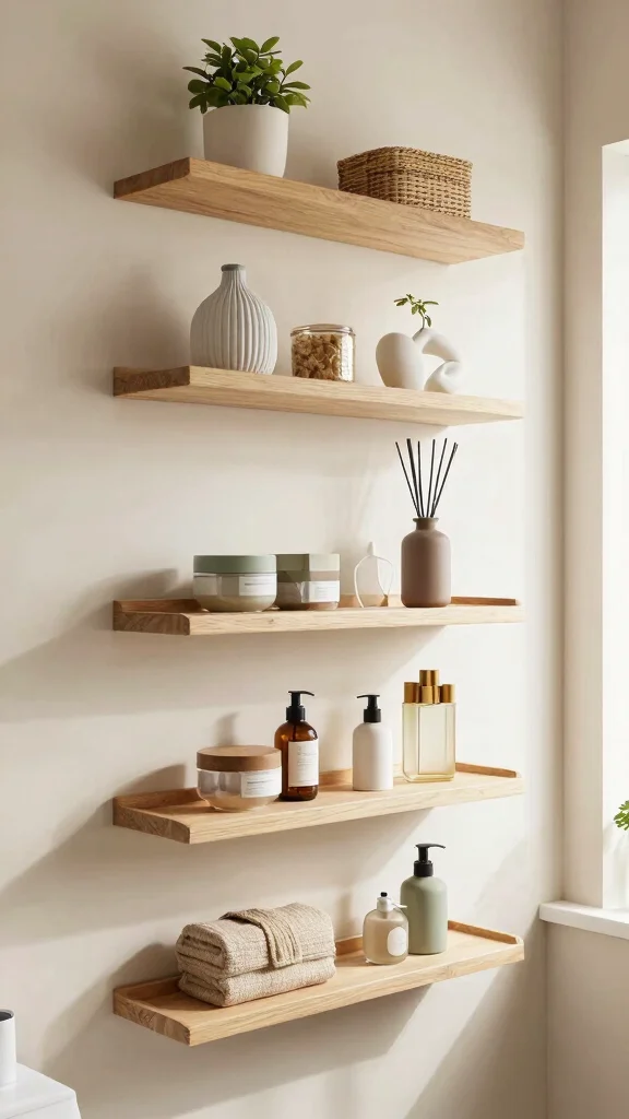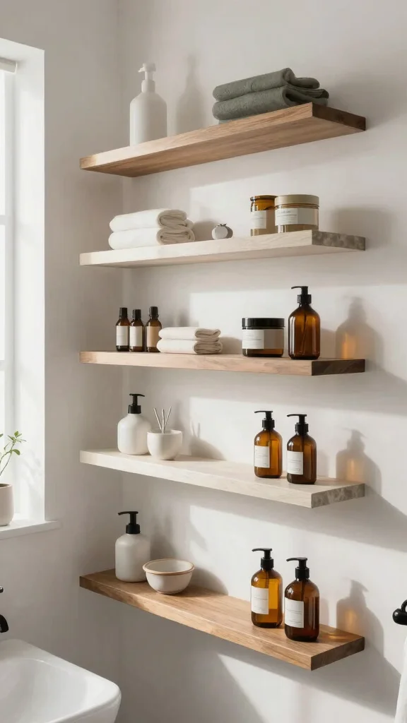 The design of your floating shelves should complement your bathroom decor. Whether you prefer minimalist styles, rustic charm, or modern accents, choose shelves that enhance your existing design. Look for artistic features or interesting shapes that can serve as statement pieces. Remember, stylish shelf designs can transform your space from ordinary to extraordinary.