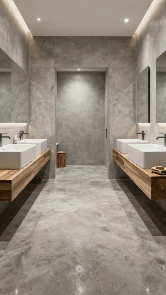 Polished concrete floors introduce a contemporary edge to your bathroom, perfect for those embracing an industrial aesthetic. This durable flooring can be stained or dyed to match your color scheme and textured for added interest. The light-reflective properties of concrete create a bright and airy feel, even in smaller spaces.