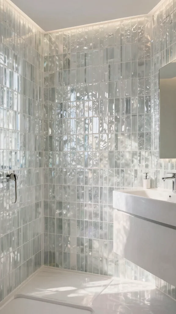 Glass tiles introduce a luxurious element to your bathroom, reflecting light and adding elegance. Available in a range of colors, they can serve as accents or cover entire floors, creating a stunning visual impact. They are also easy to clean, making them a practical choice for wet environments.