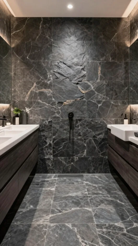 Slate tiles offer a dramatic flair for those wanting to make a statement in their bathroom. Available in various shades, from deep blacks to vibrant blues, slate allows for a truly unique design. This durable and water-resistant option shines as an excellent choice for bathroom floors.