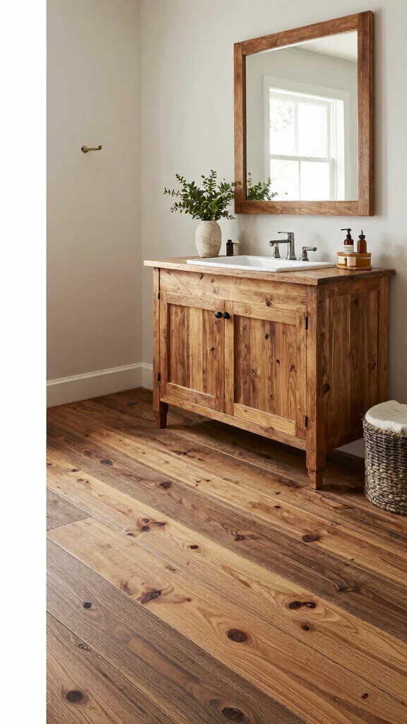 Consider investing in a sealant designed specifically for bathrooms to protect your reclaimed wood. Pairing this flooring with vintage fixtures amplifies the rustic aesthetic, creating a cohesive look. This approach taps into a growing trend of using reclaimed materials in home design, enhancing both style and sustainability.