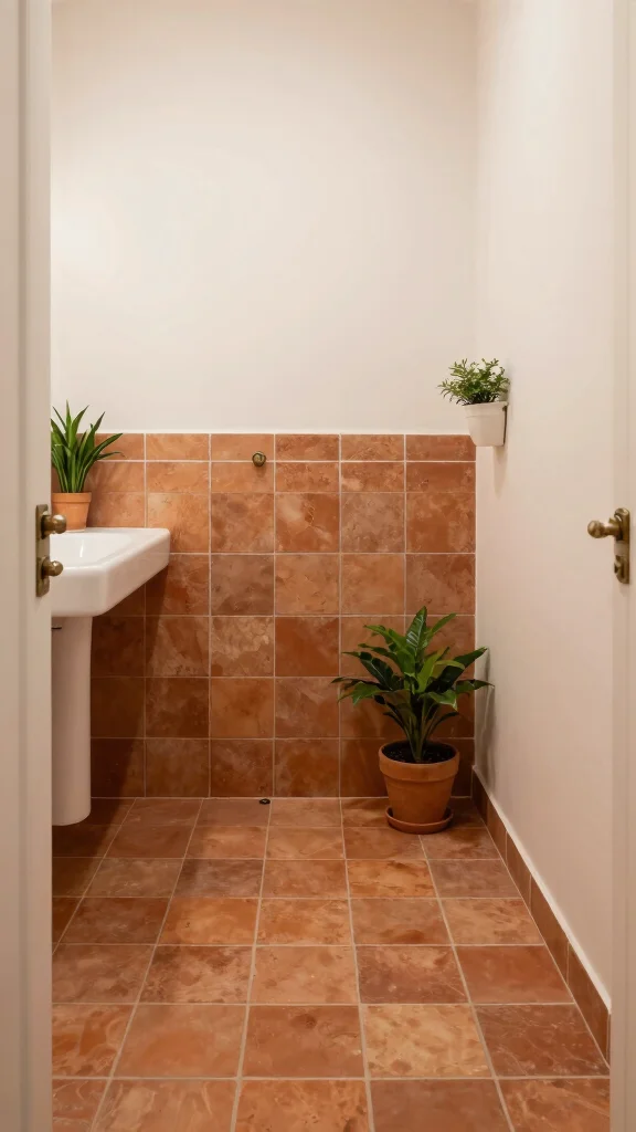 Terracotta tiles offer a warm and rustic touch, ideal for creating a cozy bathroom atmosphere. Made from natural clay, these tiles feature earthy hues that beautifully contrast with modern fixtures. Their natural porosity means sealing is essential to protect against moisture, but the effort is well worth it. The unique character of terracotta adds charm and depth to your space.