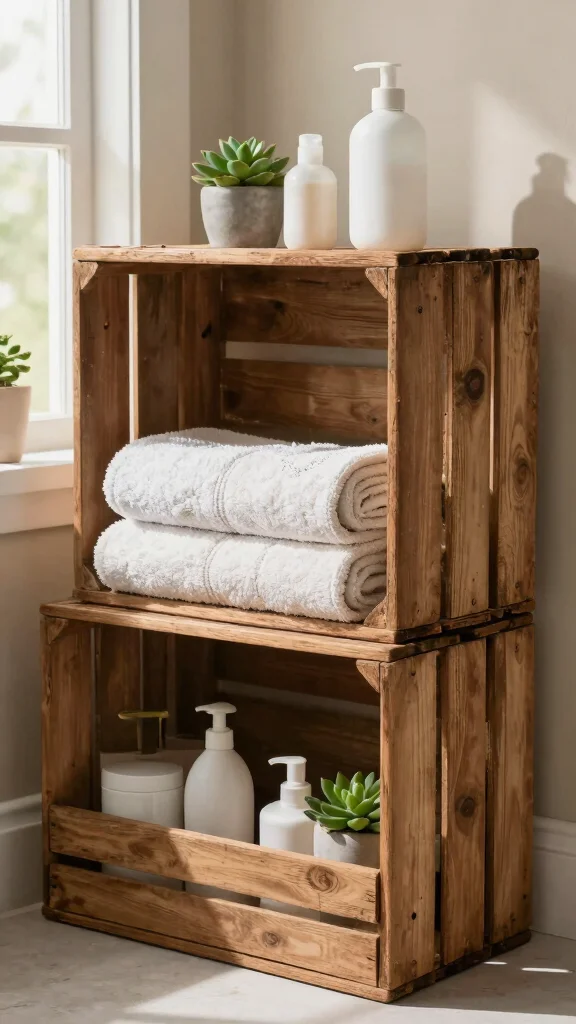 This blend of functionality and aesthetic charm makes vintage crates an essential choice for bathroom organization.