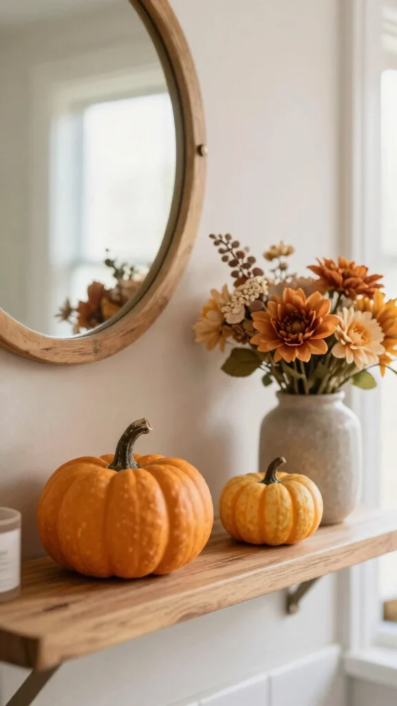 Refreshing your bathroom shelves with seasonal decor is a delightful way to keep your space feeling new. By rotating items like faux pumpkins in the fall or floral arrangements in the spring, you can create a dynamic and inviting atmosphere year-round. Choose pieces that align with your rustic farmhouse theme for a cohesive look.