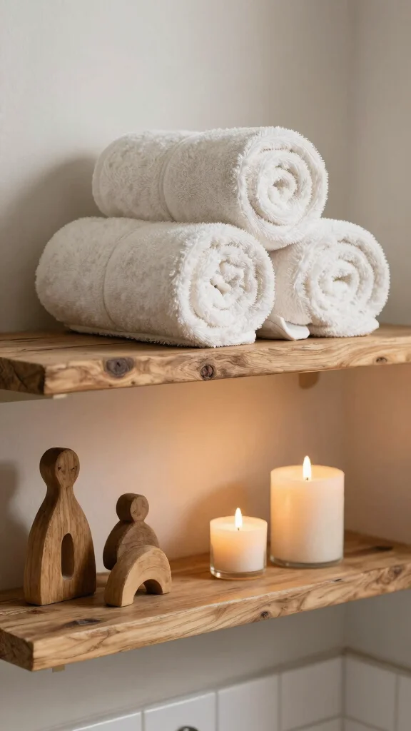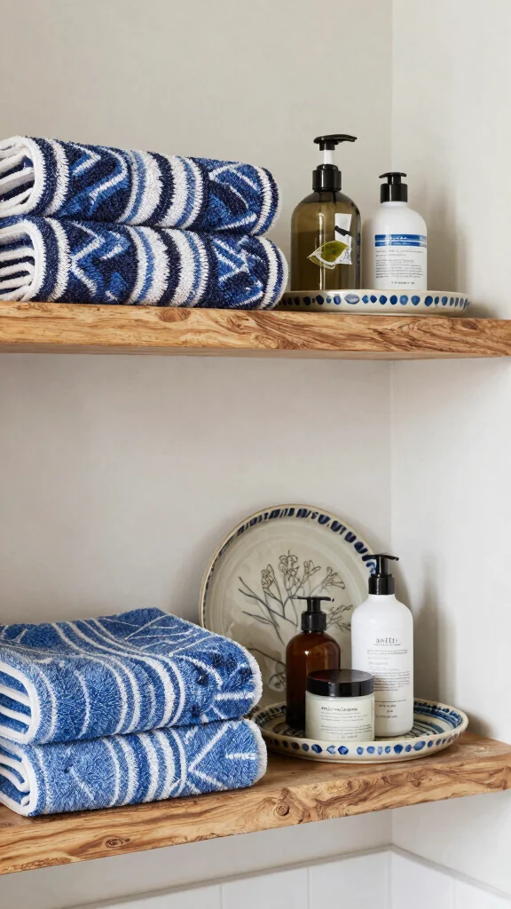 – Layered Textures: Mix towels and decorative items for a cozy feel that adds depth to your shelves.