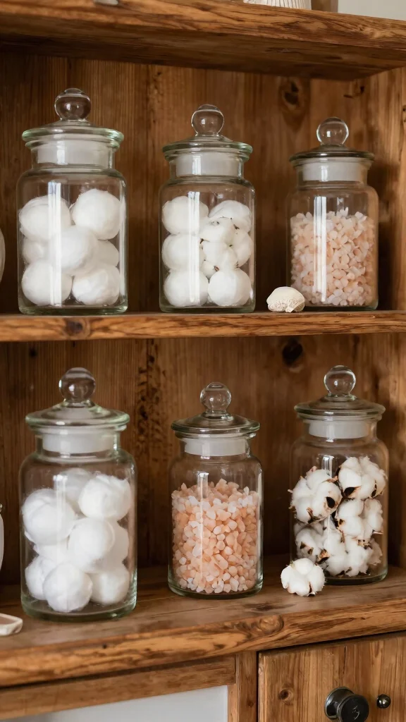 Incorporating apothecary jars keeps your essentials organized and adds a lovely touch to your bathroom decor.