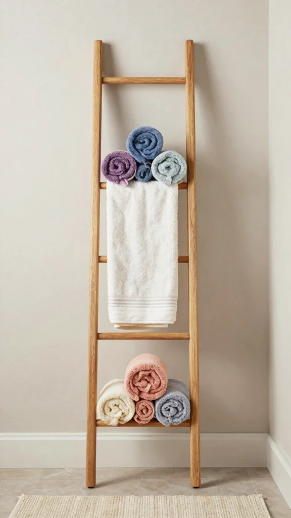 Towel ladders serve as both functional storage and decorative accents in your bathroom. These chic pieces provide an elegant way to display your favorite towels while saving space. Hang rolled towels in various colors and textures for an appealing visual display.