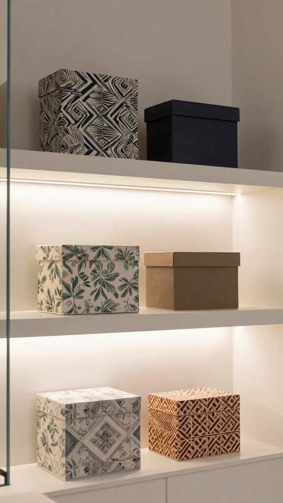 Chic display boxes elevate your bathroom decor while providing a practical storage solution that doesn’t compromise on style.