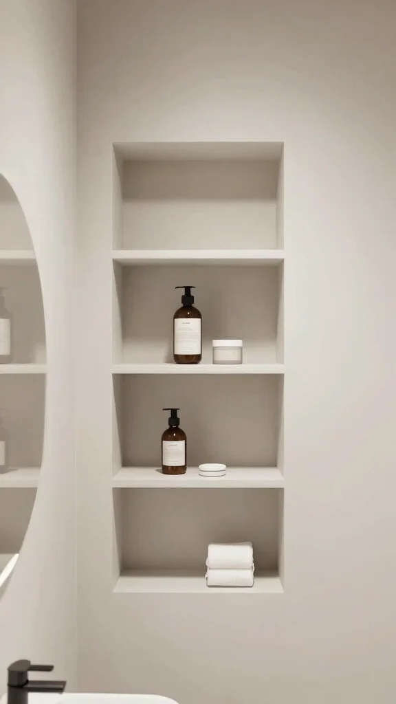 For a sleek, clean look, consider hidden shelving solutions that blend seamlessly into your bathroom decor. Options such as recessed shelves in walls or pull-out shelves keep items out of sight while remaining easily accessible. This design approach reduces visual clutter and promotes a spa-like feel in your space.