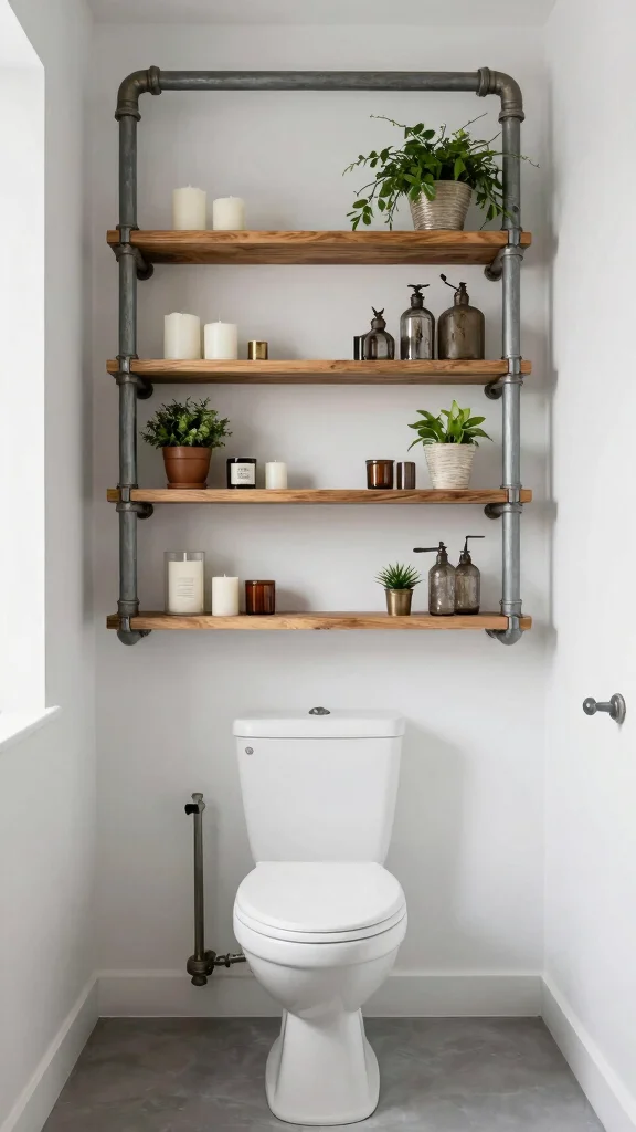 For those drawn to an industrial aesthetic, pipe shelving offers a bold statement in your bathroom. The combination of wood and metal creates a rugged, urban look that complements various decor styles beautifully.