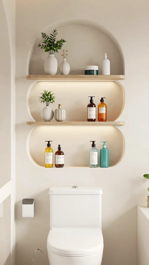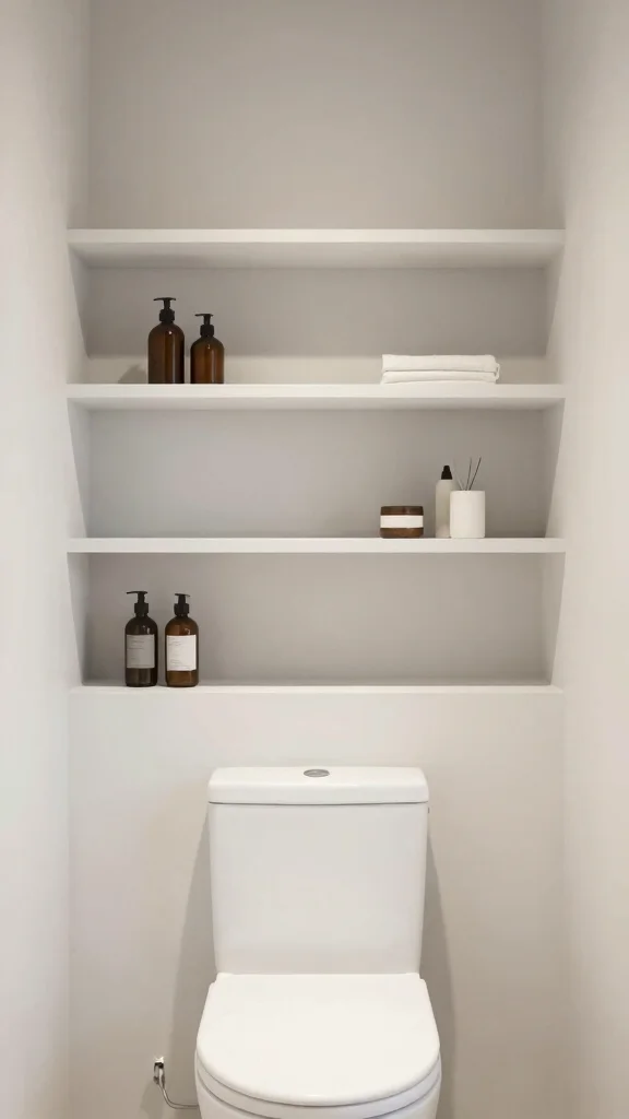 This method of storage minimizes clutter while enhancing the overall aesthetic of your bathroom.
