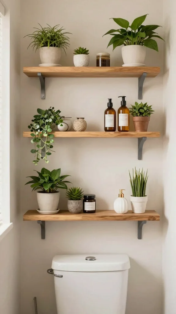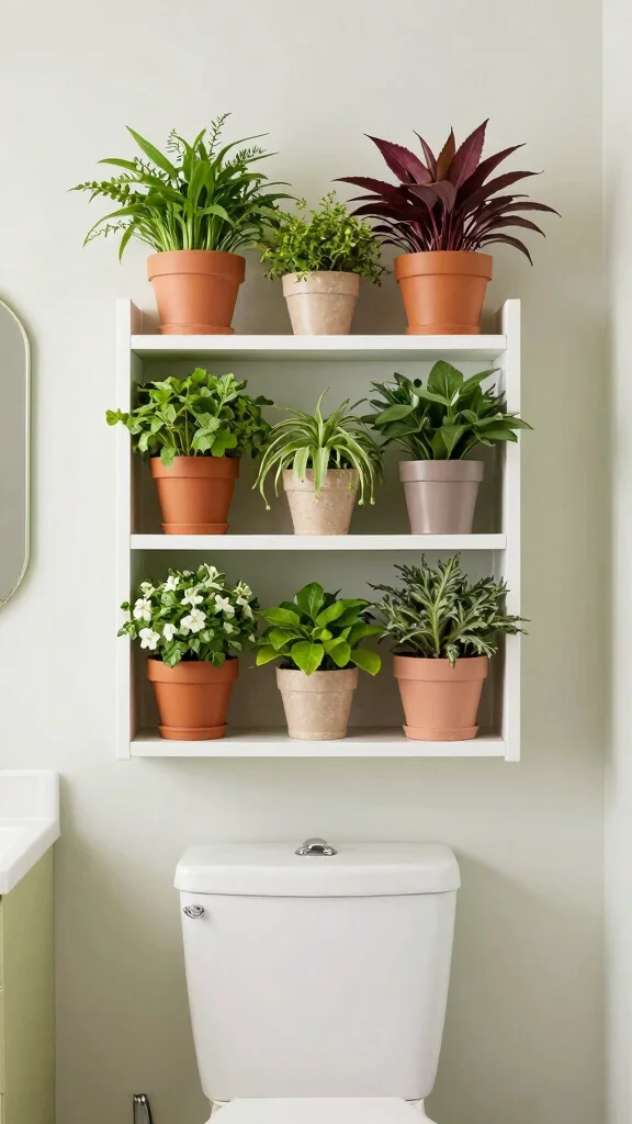 A vertical planter shelf not only maximizes space but also brings life into your bathroom, creating a more inviting atmosphere.