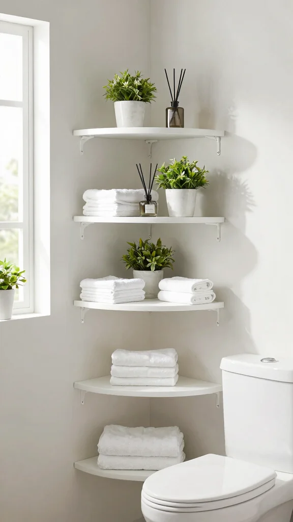 Utilizing corner shelves can significantly enhance your bathroom’s storage capacity without sacrificing valuable floor space. These shelves fit snugly above the toilet, creating a unique display area for bath essentials, particularly beneficial in compact bathrooms.