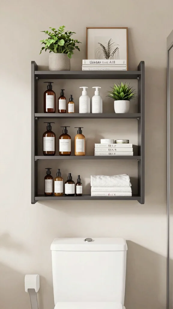 A multi-level shelf system is a practical solution for maximizing vertical storage above toilets. These systems allow you to organize several items without cluttering the space, ensuring everything remains easily accessible.