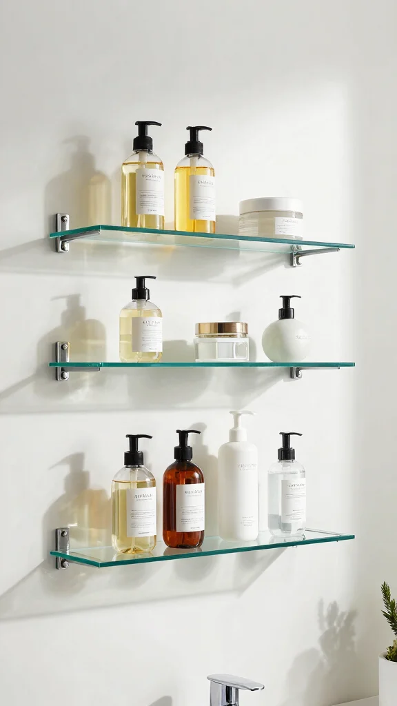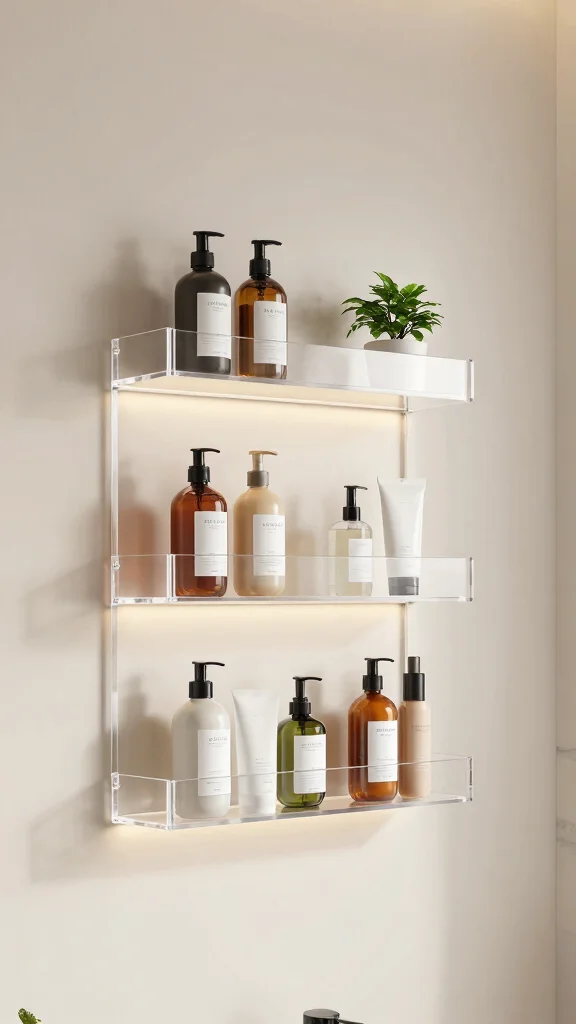 Acrylic is also a durable material that withstands moisture, making it ideal for bathroom use. Use these shelves to display chic bath products or small plants, ensuring your essentials are organized yet easily accessible.