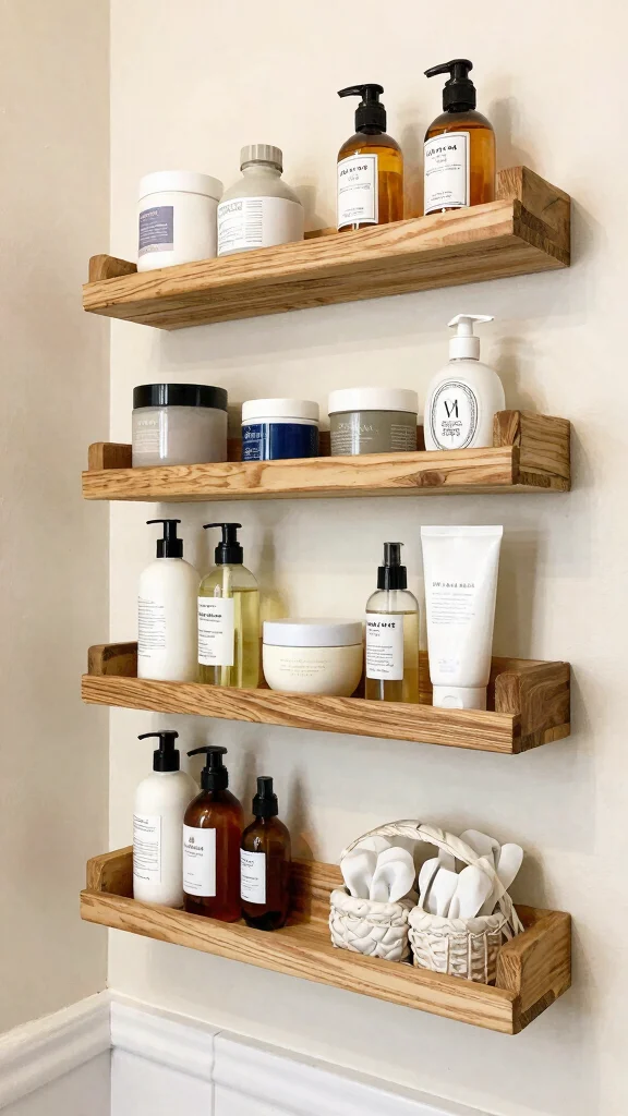 Use these shelves to display your favorite beauty products, books, or decor pieces. The key is to balance aesthetics with practicality, arranging items by color or size for a cohesive look.