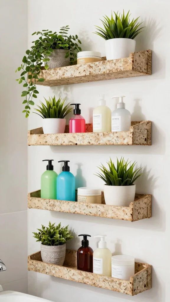 Embrace sustainability with shelves made from recycled materials, such as plastic or reclaimed wood. These eco-friendly shelves help keep your bathroom organized while promoting a greener planet. Materials like recycled plastic can be transformed into stylish shelf designs that are both durable and functional.