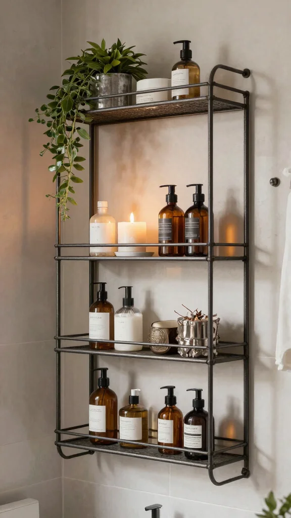 Fun fact: Decorative Metal Shelving can safely hold 30-50% more weight than standard wood shelves, so you can stash heavier skincare bottles without sacrificing style. These bathroom storage shelves turn function into a striking focal point.