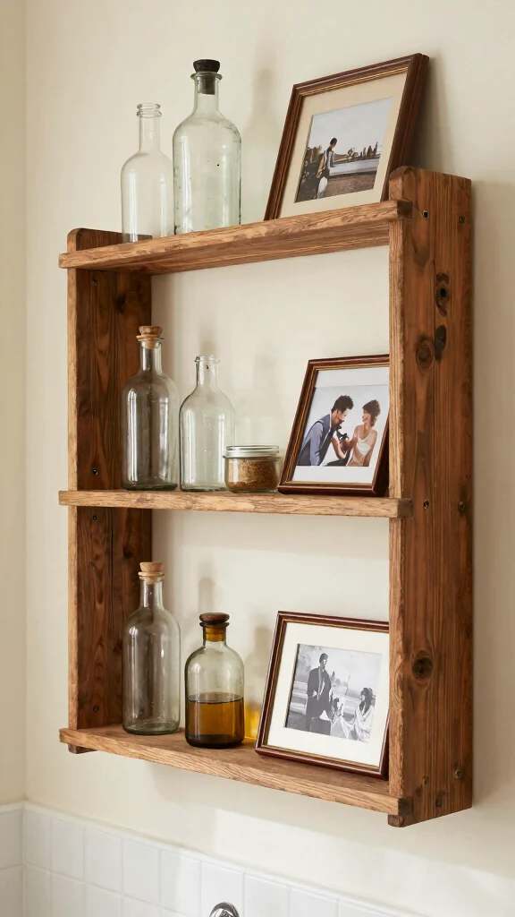 To make the most of these shelves, consider varying their heights or stacking them for a unique look. Incorporate small glass jars filled with bath salts or handmade soaps to enhance the rustic charm. You can even add a few decorative items to personalize your display.
