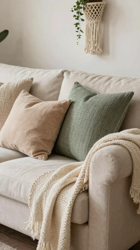 Choose a few natural textures—jute, rattan, linen—and layer textiles thoughtfully so the room feels cozy but not crowded.
