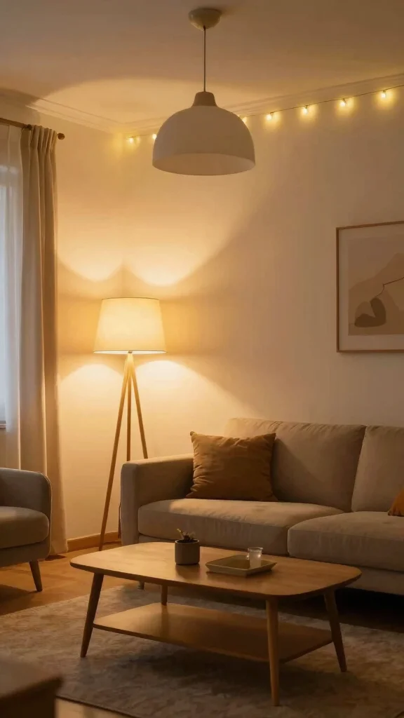 Use layered lighting with various sources to create a cozy ambiance, balancing brightness and warmth in your living space.