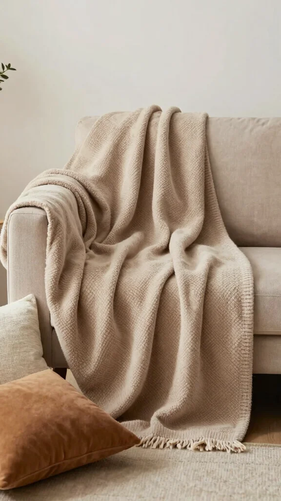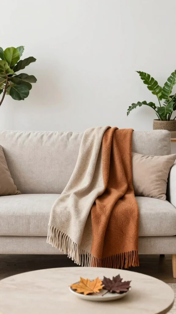 – Pair soft cream cushions with a warm brown throw blanket.