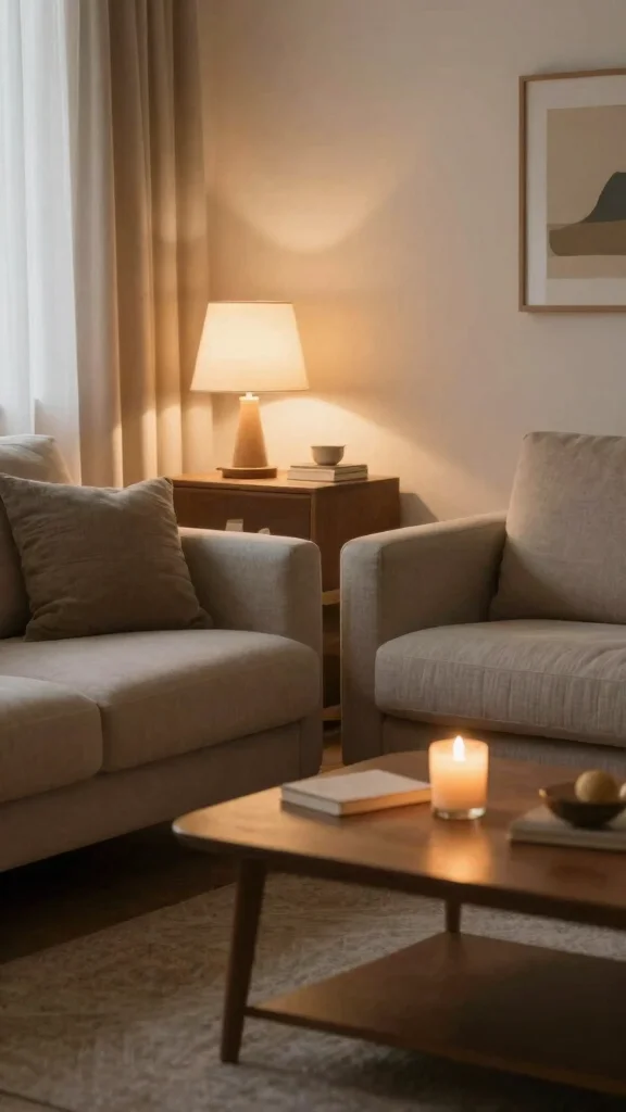 Infuse your personality into the space with items that reflect your journey or interests. Display travel souvenirs or family photos in understated frames. These small touches make your living room feel like home and enhance the cozy home aesthetics you desire.