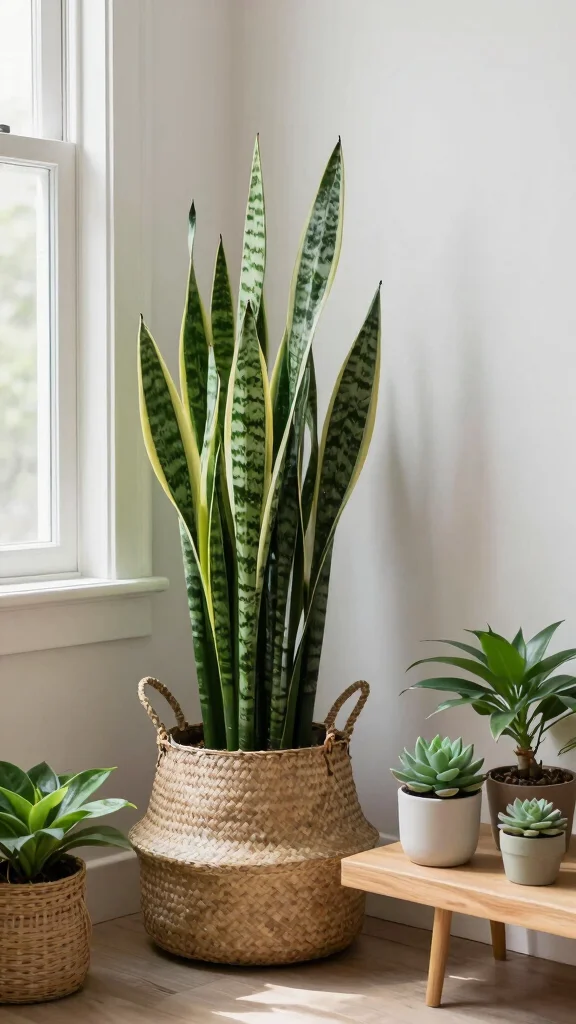 – Use snake plants in corners for height and drama.