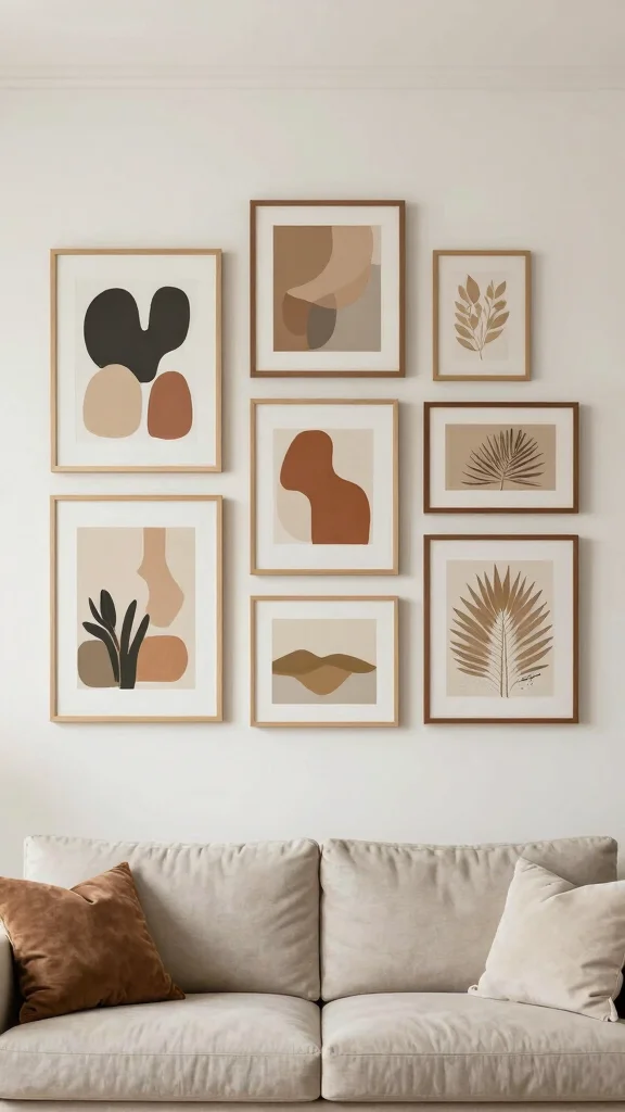 A well-curated gallery wall can showcase your favorite pieces while maintaining simplicity, inviting conversation and admiration in your living room.