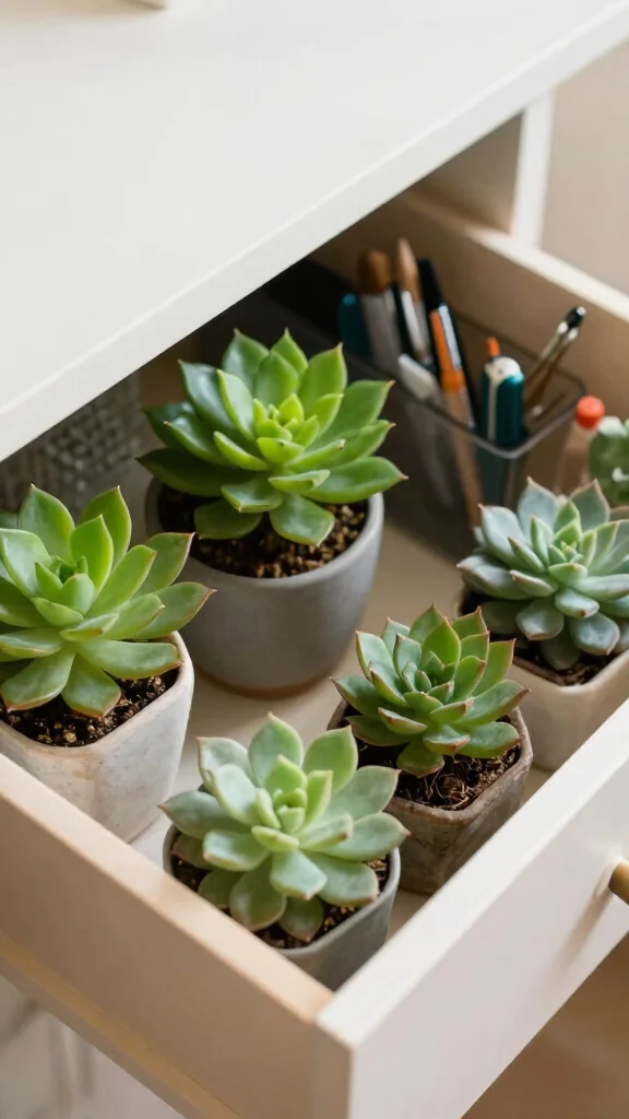 Using small pots alongside organizers can create a lively atmosphere, making your drawers feel more inviting. This unique approach encourages a connection with nature, even in small spaces.