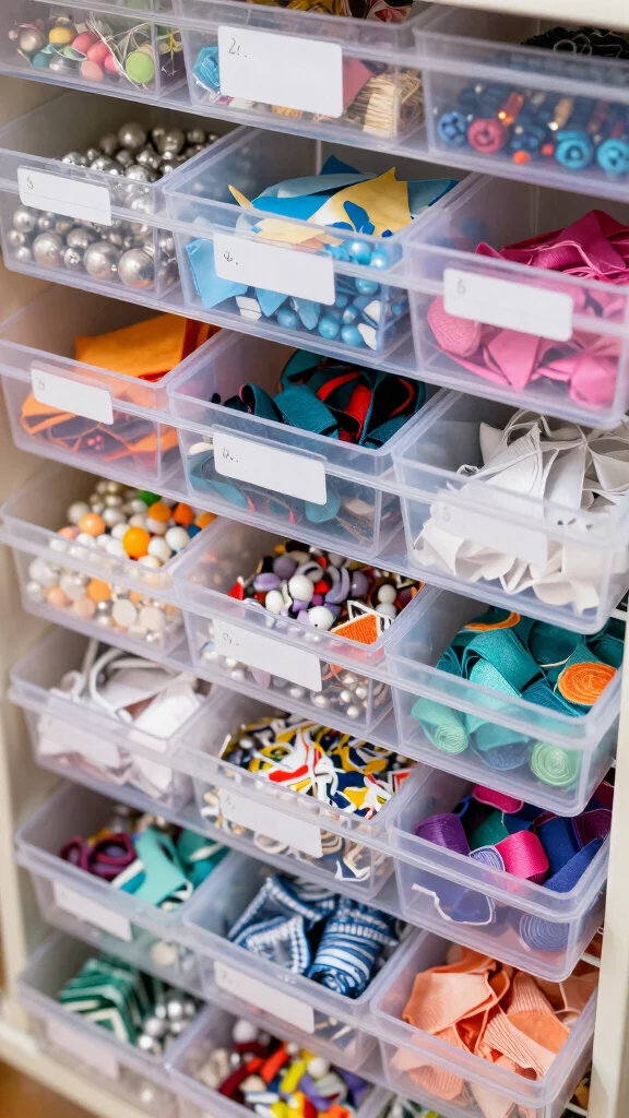 Using clear boxes keeps your crafting area tidy and inspires creativity while making it easier to find supplies.