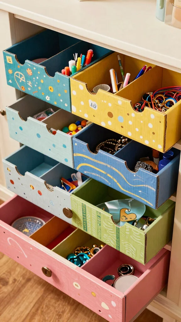Creating drawer organizers from recycled cardboard is an innovative and budget-friendly solution. This DIY approach allows you to customize sizes to perfectly fit your needs while contributing to sustainability efforts. You can personalize your organizers by painting or covering them with decorative paper for a fun finish.