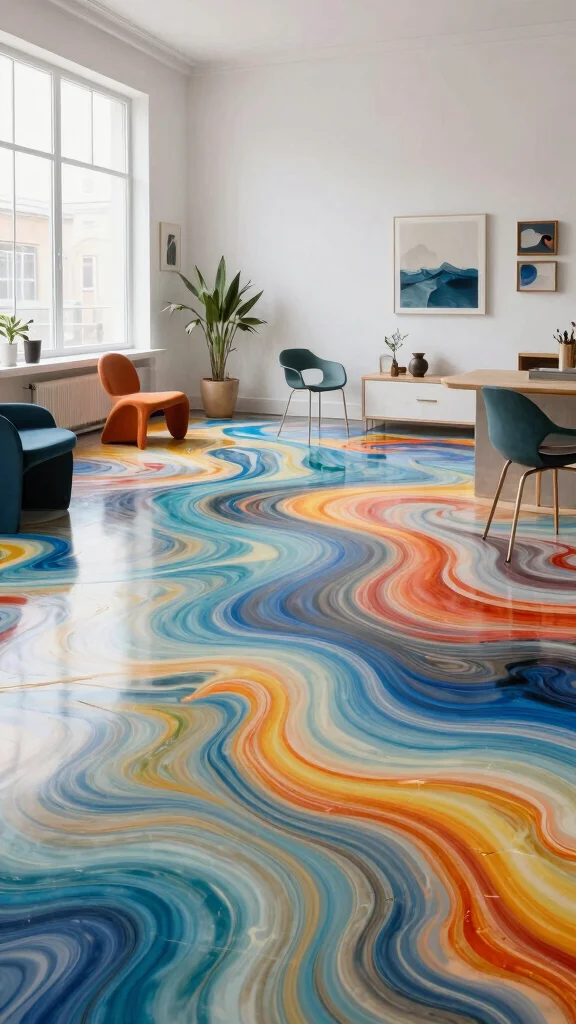 Artistic epoxy flooring transforms your home into a stunning work of art.
