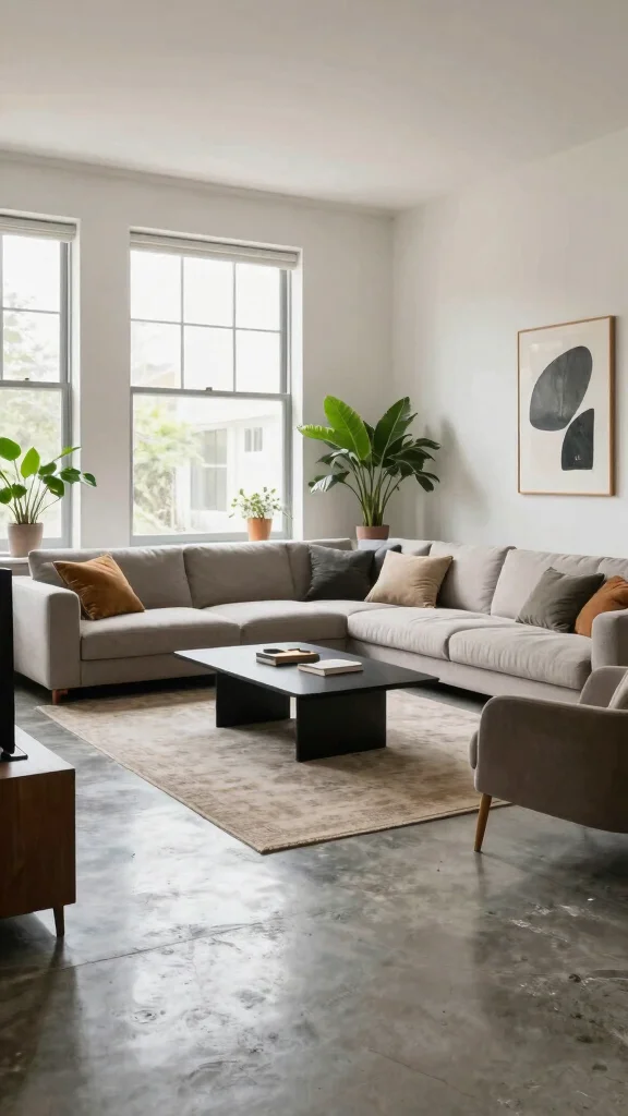Concrete flooring is a strong choice for those aiming for a modern, industrial aesthetic. Its incredible durability allows for a variety of finishes, from polished to matte, making it adaptable for different styles.
