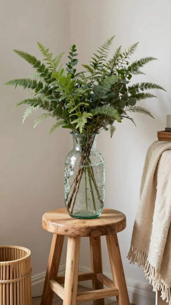 If you prefer fresh stems, opt for bamboo or date palm fronds and switch them seasonally to keep the display vibrant. Finish with light fillers like grasses or feathers to add depth and a true decorative vase vibe.