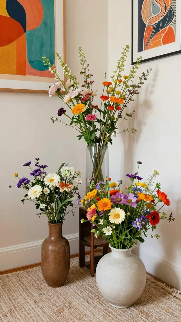 Combine vases of varying heights and sizes to create a dynamic display that draws the eye and enhances your corner.